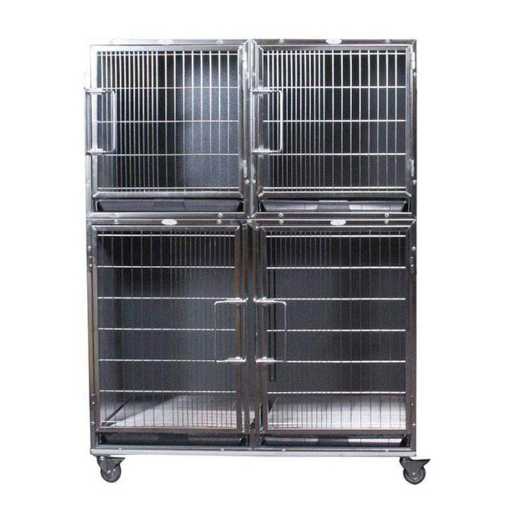 Higiénico y fácil de limpiar:En comparación con los diseños curvos, los bordes rectos de la jaula para mascotas de acero inoxidable en ángulo recto son más fáciles de limpiar. Combinado con la tecnología de soldadura sin costuras, reduce eficazmente el crecimiento bacteriano y mantiene la salud de las mascotas.