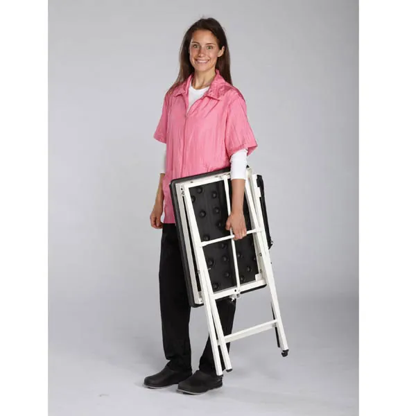 La mesa pesa aproximadamente 26 libras, equilibrando estabilidad y portabilidad.