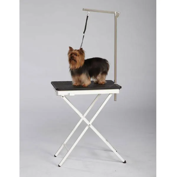 - Antes de usar, asegúrese de que la mesa de aseo para perros pequeños esté completamente desplegada y bloqueada de forma segura.