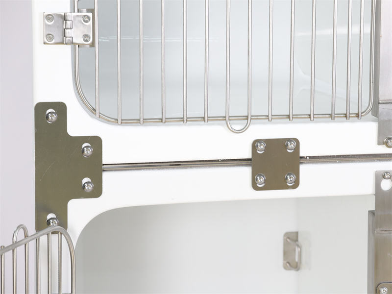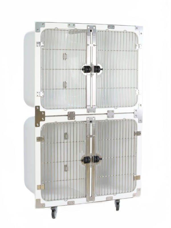 Cada jaula se puede dividir en niveles superior e inferior; Las jaulas de dos niveles acomodan más perros pequeños o cachorros según sea necesario, con estantes de descanso adicionales diseñados específicamente para gatos y animales pequeños.