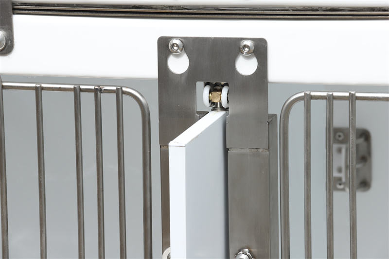 Las boquillas y mangueras rociadoras preinstaladas, un sistema de drenaje con filtro y tomas de corriente lo transforman de una simple jaula a una estación de trabajo multifuncional. Los equipos eléctricos, como máquinas de anestesia, concentradores de oxígeno y almohadillas térmicas, se pueden conectar a los enchufes y suspenderse del travesaño central de la puerta. La puerta de entrada de la jaula modular para perros veterinaria impermeable de fibra de vidrio permite la instalación de sombrillas a través de curvas en forma de U, bloqueando la luz solar y al mismo tiempo sirviendo como barrera contra el viento.